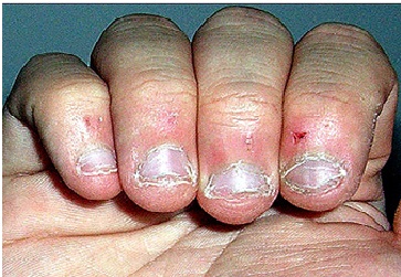 When the Staphlococcus aureus bacteria get into the small open sores; then it results in the formation of pus around the nail. This is actually finger herpes and can be cured by taking pills but in extreme cases, they have to be surgically treated or drained.